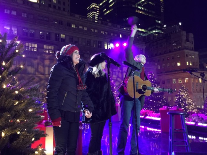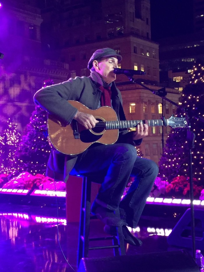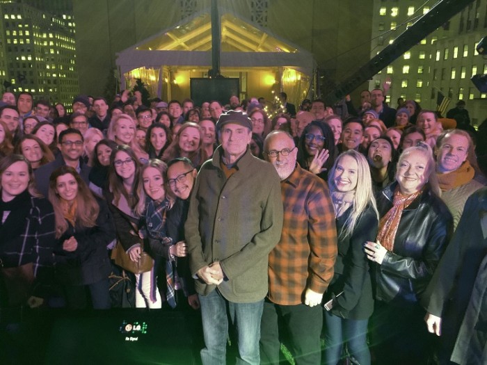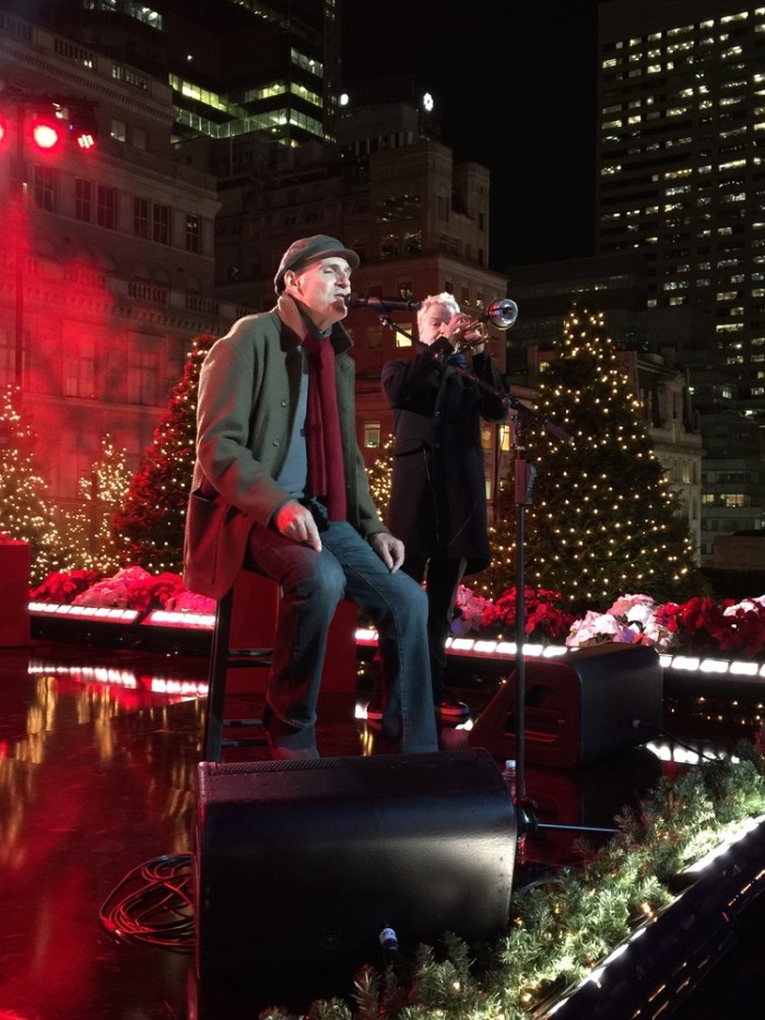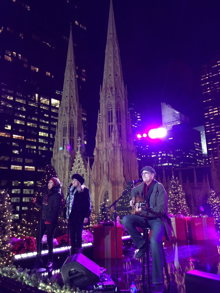 - James and the crowd at Rockefeller Center. Photo by Ellyn Kusmin.
