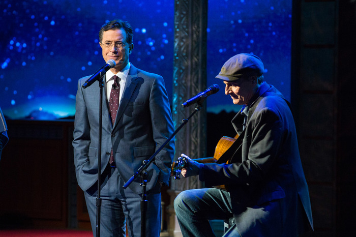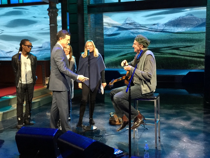 - James chats with Stephen Colbert. (Photo by Ellyn Kusmin).