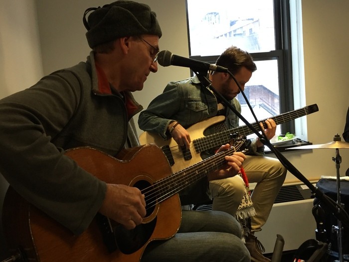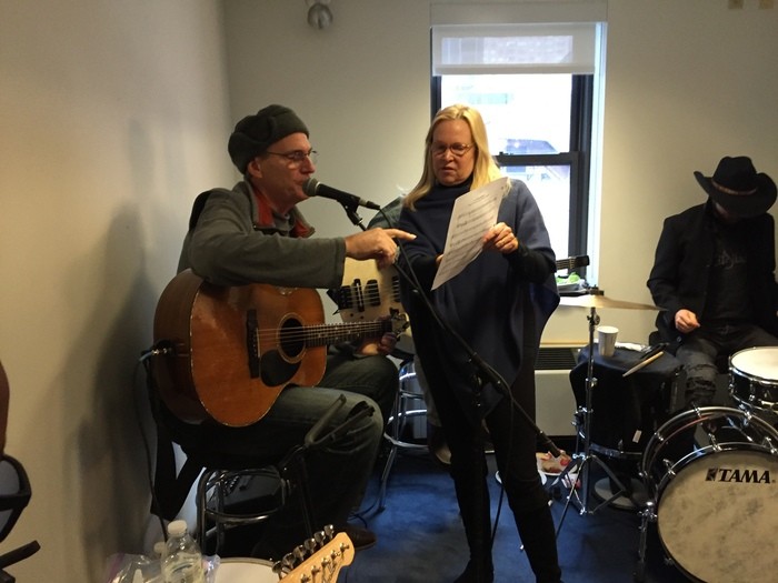 - Rehearsing “Montana” with members of Stay Human, Kate and Kim. (Photo by Ellyn Kusmin)