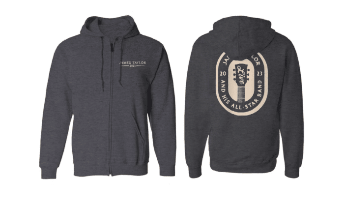 2023 Tour hoodie with “James Taylor 2023” on the front and “James Taylor and his All-Star Band 2023” logo on the back.
